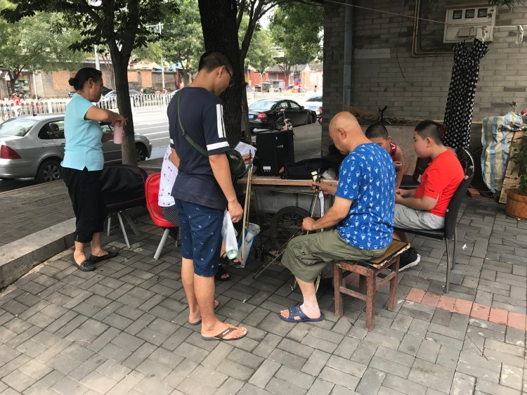 Por los alrededores de dicho local de luthería, me di cuenta que la gente se toma los espacios comunes de las veredas que son más anchas donde se ponen a dar y tomar clases, lo cual encontré fantástico ya que es una buen forma de incentivar la cultura. En china no sólo los niños toman clases de instrumentos, sino que, también las dueñas de casas que ya no tienen muchas obligaciones o responsabilidades se dan el tiempo de aprender algún instrumento, lo cual es genial. Todos están ocupando bien su tiempo.-