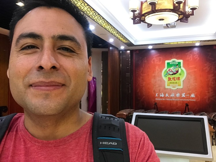 Cuando llegamos a Shanghai, logré llegar a la fábrica de Dunghuang, una prestigiosa marca de instrumentos musicales de excelente calidad. Claro que los valores eran muy altos para mí. Quedé emocionado por haber llegado tan lejos, ya que queda en las afueras de la ciudad.