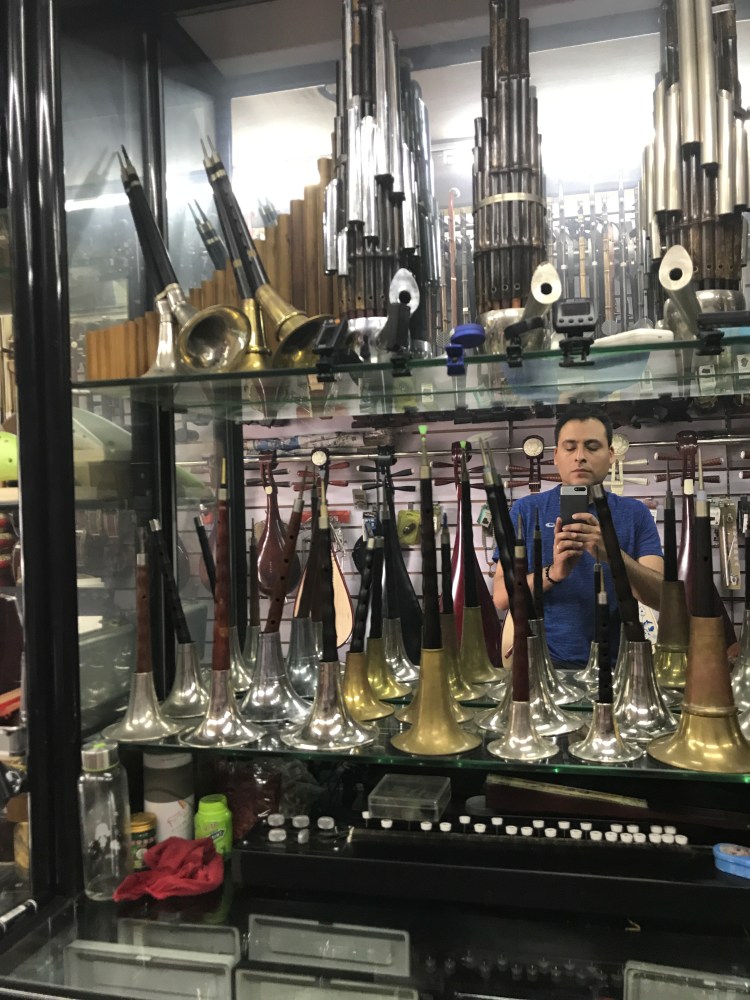 En Beijing, conocí a un Luthier cuyo nombre no me acuerdo, al que pude encontrar mientras me perdía a propósito en la ciudad. Él junto a su hermana «雪莲 – Loto de Nieve» atendían este negocio algo desordenado y con instrumentos amontonados, cuyo desorden me daba la oportunidad de tomar el que quiera para poder tocarlo. Para sorpresa suya, yo sabía interpretar piezas en el Erhu «二胡» y con ello pude encantarlo y ganar su confianza. También unos chicos que buscaban una flauta se hicieron de mis amigos y puedo contactarlos de vez en cuando por WeChat a todos. Terminé comprando un par de instrumentos a mi elección lo que me dejó muy conforme.
